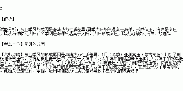 东亚季风的成因主要是 ( )