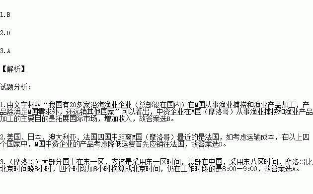 1.中资企业在M国从事渔业捕捞和渔业产品加工的主要目的是