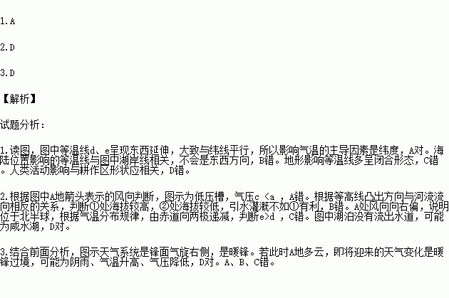 1.影响等温线d、e呈现东西延伸的主导因素是( )