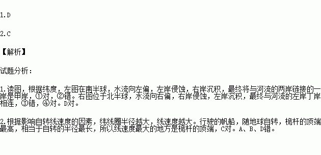 ①甲岸 ②乙岸 ③丙岸 ④丁岸