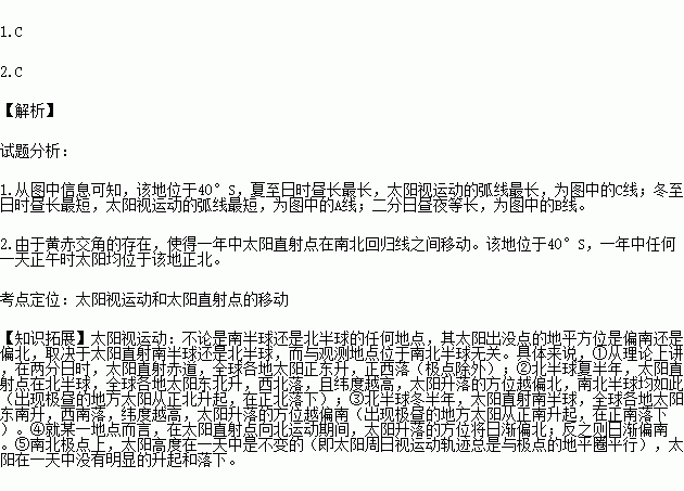 1.A.B.C三条太阳视运动轨迹所表示的节气,正确的是