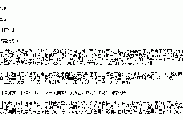 1. 影响湖泊东西岸风向差异的主要因素为( )