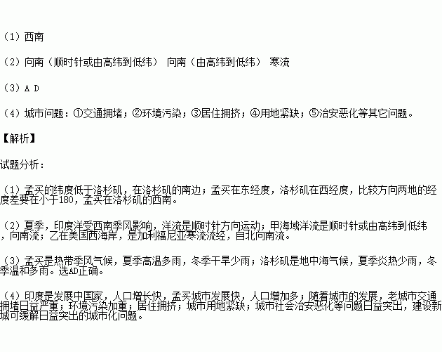 (3)下列有关孟买和洛杉矶气候的描述,正确的是 (多选题,填选项字母)。 (3分)