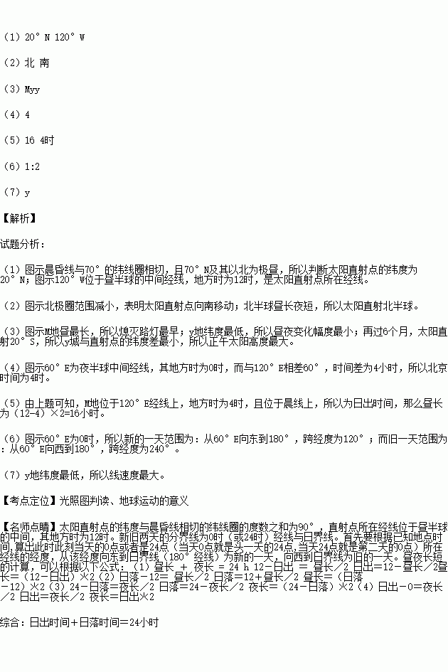 £¨1£©Í¼ÖÐÌ«ÑôÖ±ÉäµãµÄµØÀí×ø±êÊÇ £¨Î³¶È£©¡¢ £¨¾¶È£©¡£