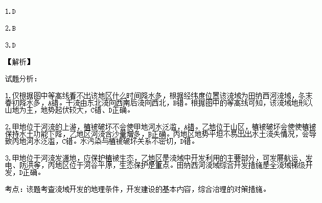 ÏÂͼΪijºÓÁ÷ÓòµÈ¸ßÏßµØÐÎͼ£¬¼×¡¢ÒÒ¡¢±ûΪ¸ÃºÓ¸ÉÁ÷ÑØÏßÈý¸öµØÇø£¬¶Áͼ»Ø´ðÏÂÌâ¡£