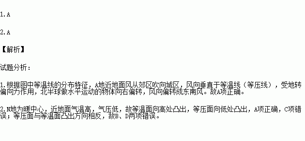 1.热岛效应形成了市郊之间的热岛环流,称为城市风系,在近地面的风又称为乡村风。A地乡村风的风向是( )