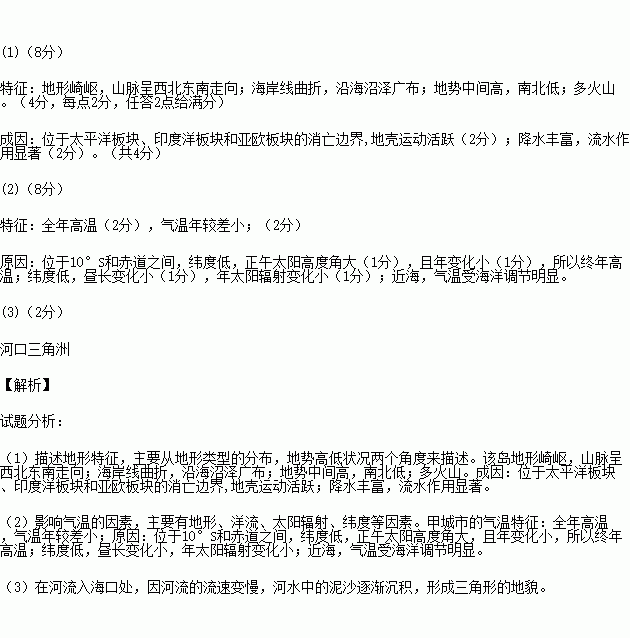 (3)乙河为该岛最大的河流,其入海口附近的地貌类型 (2分)