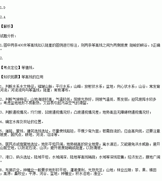 1.图中两条400米等高线之间部分表示的地形单元是