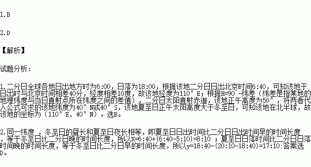 1.该地的地理坐标是( )