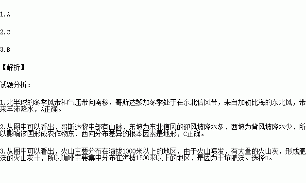 1.哥斯达黎加冬季降水丰沛,缘于该地区盛行