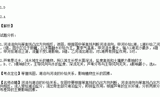 1.正确描述甲、乙两河与L湖相互关系的是( )