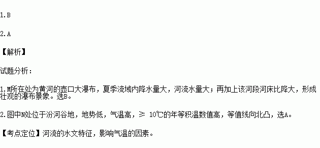 1.M处有一瀑布,此瀑布“激流翻滚,惊涛怒吼,其声方圆十里可闻,场面极为壮观”。该瀑布景观最为壮观的季节在