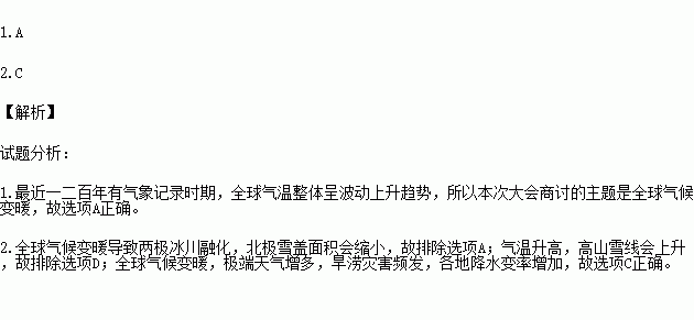 1.本次大会商讨的主题与近一二百年来的气候变化密切相关,它是