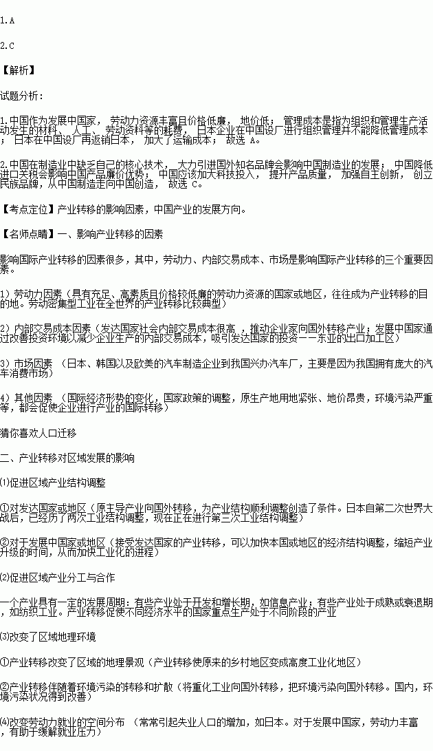 1.日本企业在中国设立工厂生产马桶盖,再返销日本,主要是因为在中国