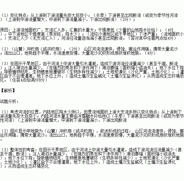 (1)简述黑河从源头到下游径流量的变化特点并分析其自然原因。