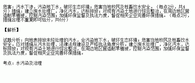简述化工企业向腾格里沙漠排放污水对当地的危害,并提出防止这种危害应采取的措施。(10分)