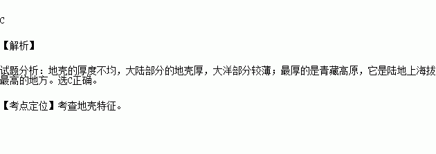 下列各地的地壳厚度,最厚的是