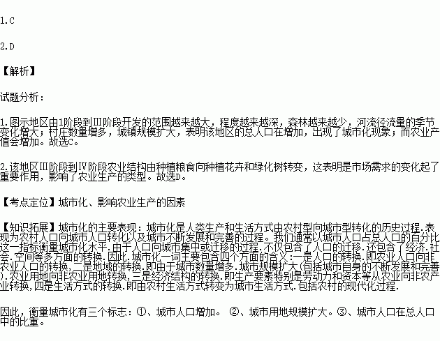 2.影响该地阶段Ⅲ到阶段Ⅳ农业结构变化的主导因素是( )