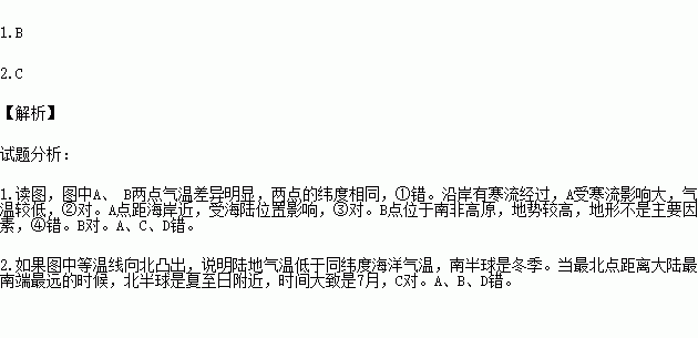 2.如果图中等温线向北凸出,最北点距离大陆最南端最远的时间大致是( )