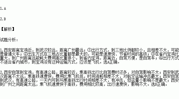 ±íΪÎ÷°²ÊÐÃñµ½±¦¼¦£¨ÉÂÎ÷Ê¡µØ¼¶ÊУ©¡¢Î人¡¢¹ãÖÝÂÃÓν»Í¨·½Ê½¹¹³É±í£¬¶Á±íÍê³ÉÏÂÌâ¡£