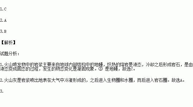 1.该火山喷发的物质来自下面地球圈层结构图中的