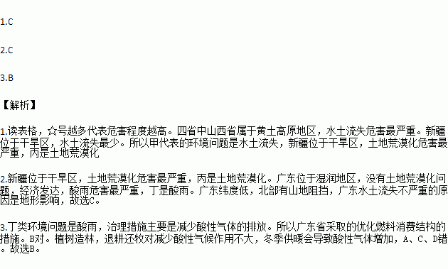 3.为治理丁类环境问题,广东省可以采取的措施是 ( )