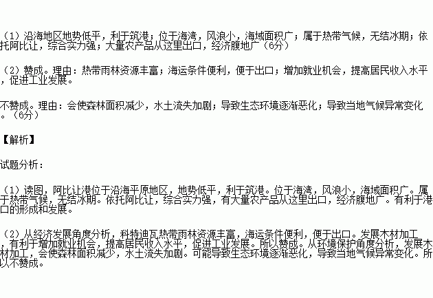 (1)简要分析阿比让港形成和发展的有利区位条件。(6分)