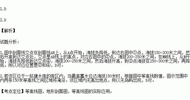 2.若该区位于一个拟建水库的库区内,当最高蓄水位达海拔150米时,图示范围内将出现( )