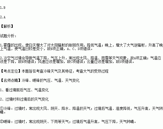 2.能正确反映这次冷空气过境天气要素变化的图是( )
