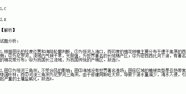 B.由于修建水库、大坝引起严重的土壤盐碱化的是图②河流三角洲