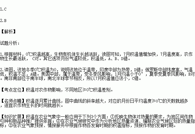 某一时段内,日平均温度≥O℃时逐日平均温度累加之和称为≥O℃积温,它是研究温度与生物发育速度之间关系的一项指标。下图示意某地≥O℃积温逐月累计曲线图,读图回答下列各题。