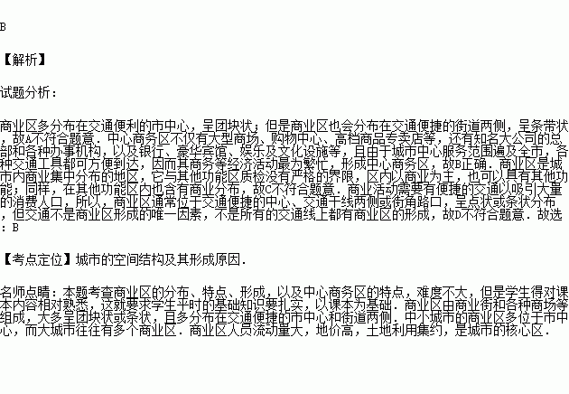 C、商业区内只有商业一种功能