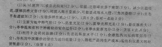 (2)从气候角度简析图中西部水果、蔬菜和灌溉农业区的区位优势。(8分)