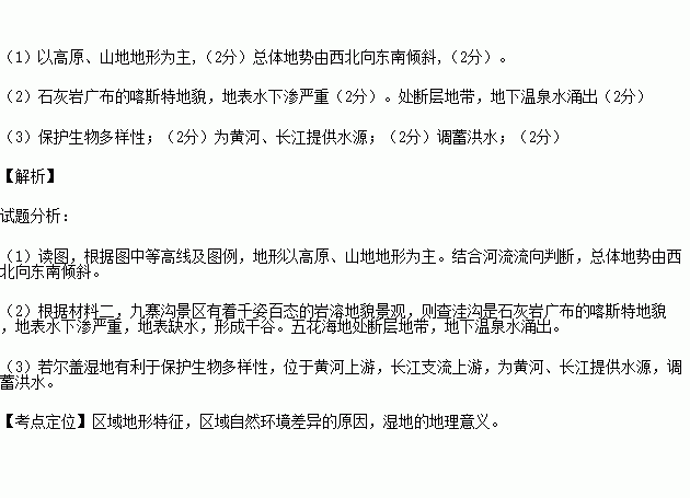 材料三 左图为若尔盖湿地周边示意图,右图为九寨沟景观分布图。