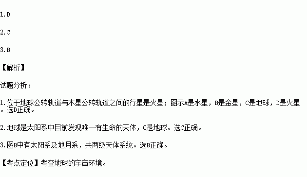 1.位于地球公转轨道与木星公转轨道之间的八大行星之一是