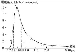 - D.C区是可见光区,约占太阳辐射总量的43%