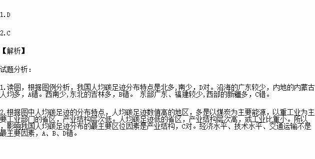 2.影响我国人均碳足迹分布的最主要区位因素是( )