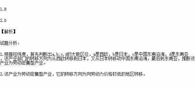 2.从图中该产业转移的方向来看,影响该产业转移的主要区位因素是( )