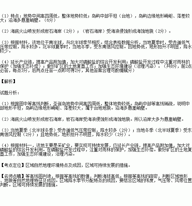 (1)简述圣诞岛的地形地势特点。