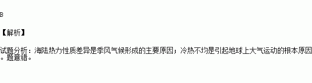 海陆热力性质差异是引起地球上大气运动的根本原因。