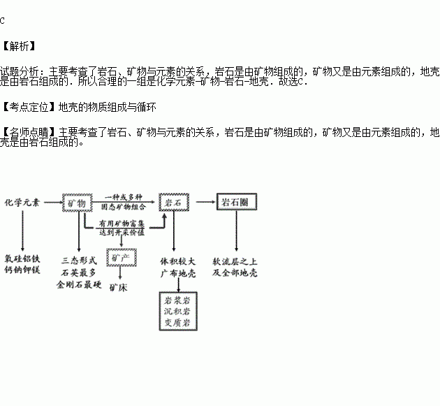D.矿物 化学元素 岩石 地壳
