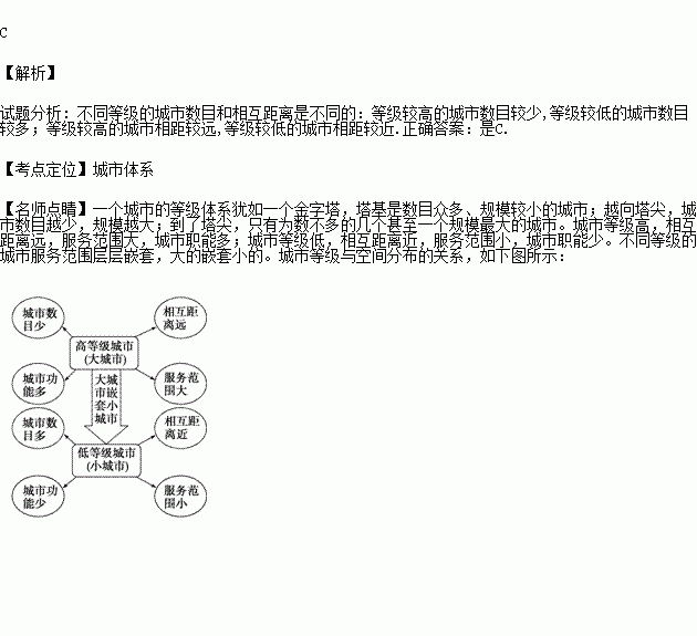 C.小城市的数目最多 D.小城市之间的距离相距较远
