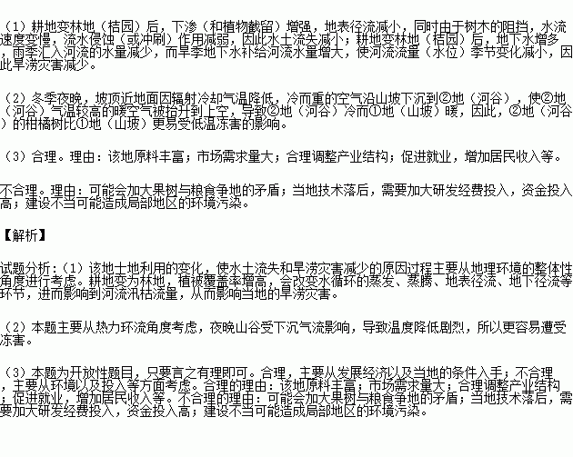 (1)该地士地利用的变化,使水土流失和旱涝灾害减少,请分析其成因过程。