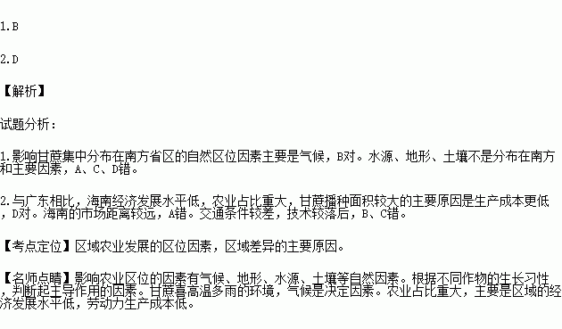 1.影响甘蔗集中分布在南方省区的自然区位因素主要是( )