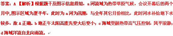 | C.干湿季节明显 | D.全年高温多雨 |