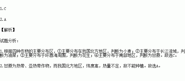 2.农作物④在我国北方地区不能种植的主要原因是( )