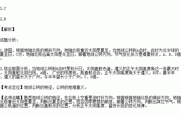 1.当地球公转到A点时,此时为北半球的( )