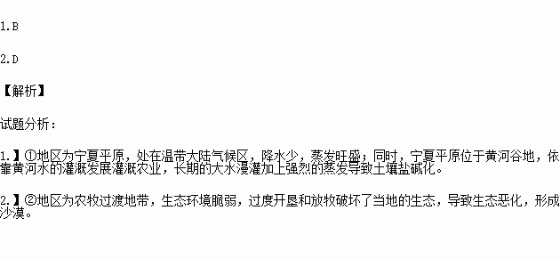 1.①地区农业发展中存在较明显的土壤盐碱化问题,其产生的主要原因是
