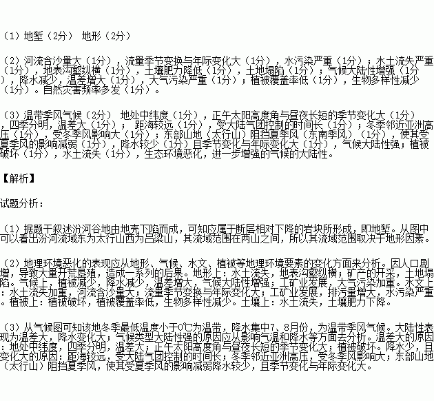 (2)汾河流域的地理环境恶化的主要表现有哪些?(13分)