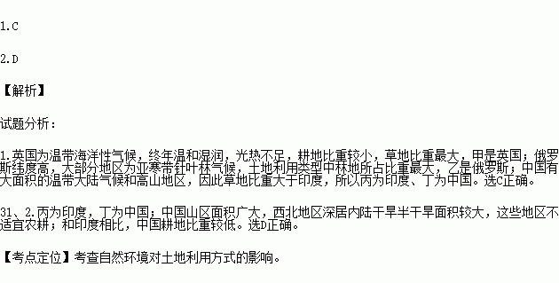 ϱíÊÇÖйú¡¢Ó¢¹ú¡¢Ó¡¶È¡¢¶íÂÞ˹Ëĸö¹ú¼ÒµÄÍÁµØÀûÓÃÀàÐ͵İٷֱȡ£Íê³ÉÏÂÌâ¡£